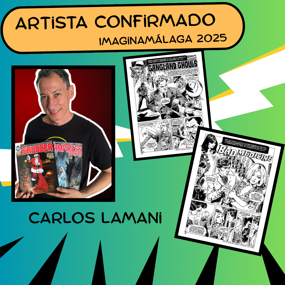 CARLOS LAMANI– Dibujante de cómics e ilustrador. En 2021 comienza a colaborar regularmente con el mercado estadounidense a través de Warrant Publishing, en la revista «Shudder», nueva denominación de la revista The Creeps, especializada en historias de terror clásico al estilo de la mítica editorial Warren. También ha participado en la otra publicación de la editorial, Vampiress Carmilla, centrada en relatos protagonizados por personajes femeninos, con una joven vampira como anfitriona. Ambas revistas cuentan con guionistas de gran trayectoria, como la leyenda del cómic Don Glut.