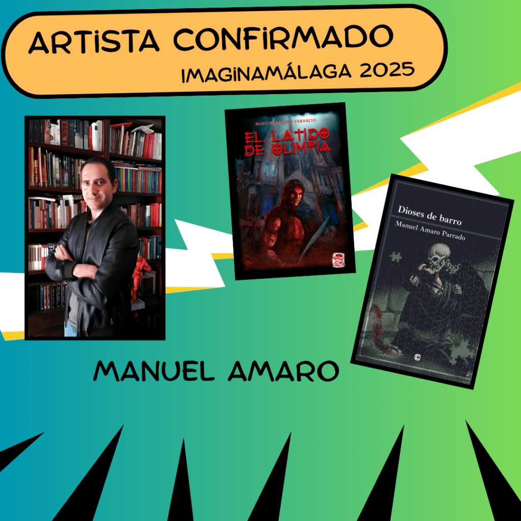 MANUEL AMARO – Es escritor y guionista de cómics. Autor de varias novelas de género fantástico (Fobos; León González, anticristo; el latido de Olimpia; Sombras en la Caverna; Dioses y Corderos; Aenigma; Dioses de barro). Sus relatos han aparecido en diversos medios y antologías, y es miembro del colectivo Killer Toons, con quien colabora como guionista de cómics. Su cómic «Sujeto Darwin», creado junto a Miguel Ángel Cáceres, fue adaptado al cine en 2015 y llevado a la gran pantalla en forma de cortometraje protagonizado por Fernando Coronado. Entre sus galardones se cuentan el Primer Premio en el II Certamen de Arte Joven de Mérida (1995), el 2º Premio en el I Certamen Internacional de Relato Abades de Córdoba (2011) y el Primer Premio en el XIII y en el XVII Certamen Internacional de Relato Breve «José Toral y Sagrista».